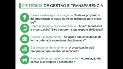 Com essa reflexão em mente, estudamos nos últimos dois anos mecanismos que pudessem fortalecer, reforçar e estimular as organizações, ao mesmo tempo que criassem, no âmbito dos doadores, uma cultura de doação. Facilitar a escolha, separando o joio do trigo. Aumentar os donativos, mas para aquelas que merecem, por seus padrões de gestão e transparência.